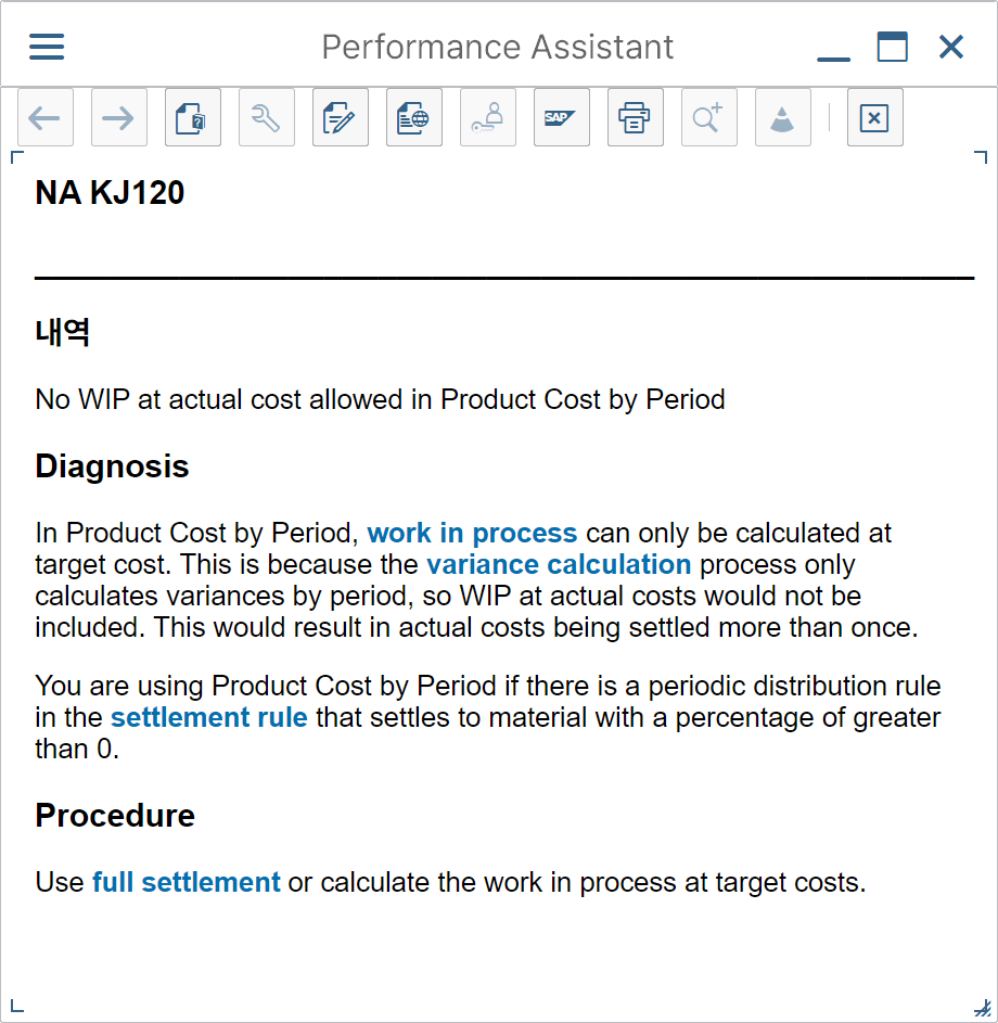 by Period 방식에서 WIP at Actual을 적용하려고 하면 위와 같은 오류 메시지가 발생한다.