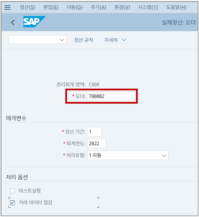 그런데 차이금액(Variance)도 116,257원 발생했다. 이건 뭘까? 왜 생긴 걸까? 다시 오더 리포트로 되돌아가 보면
