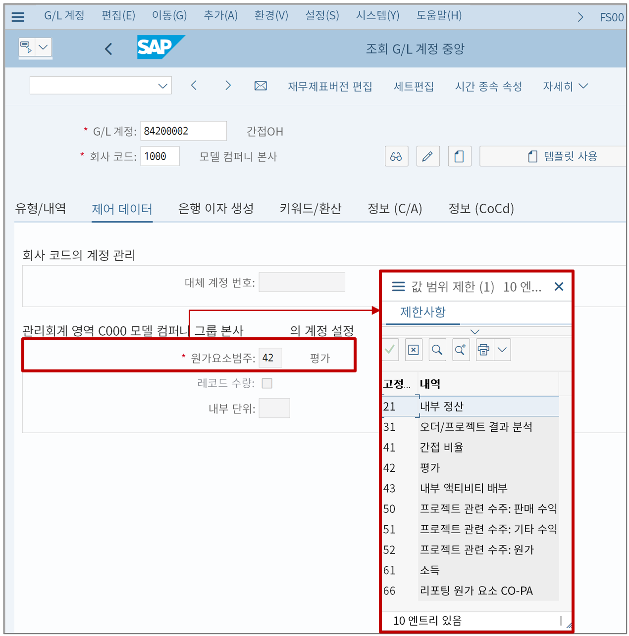 - SAP 원가요소는 계정이다.