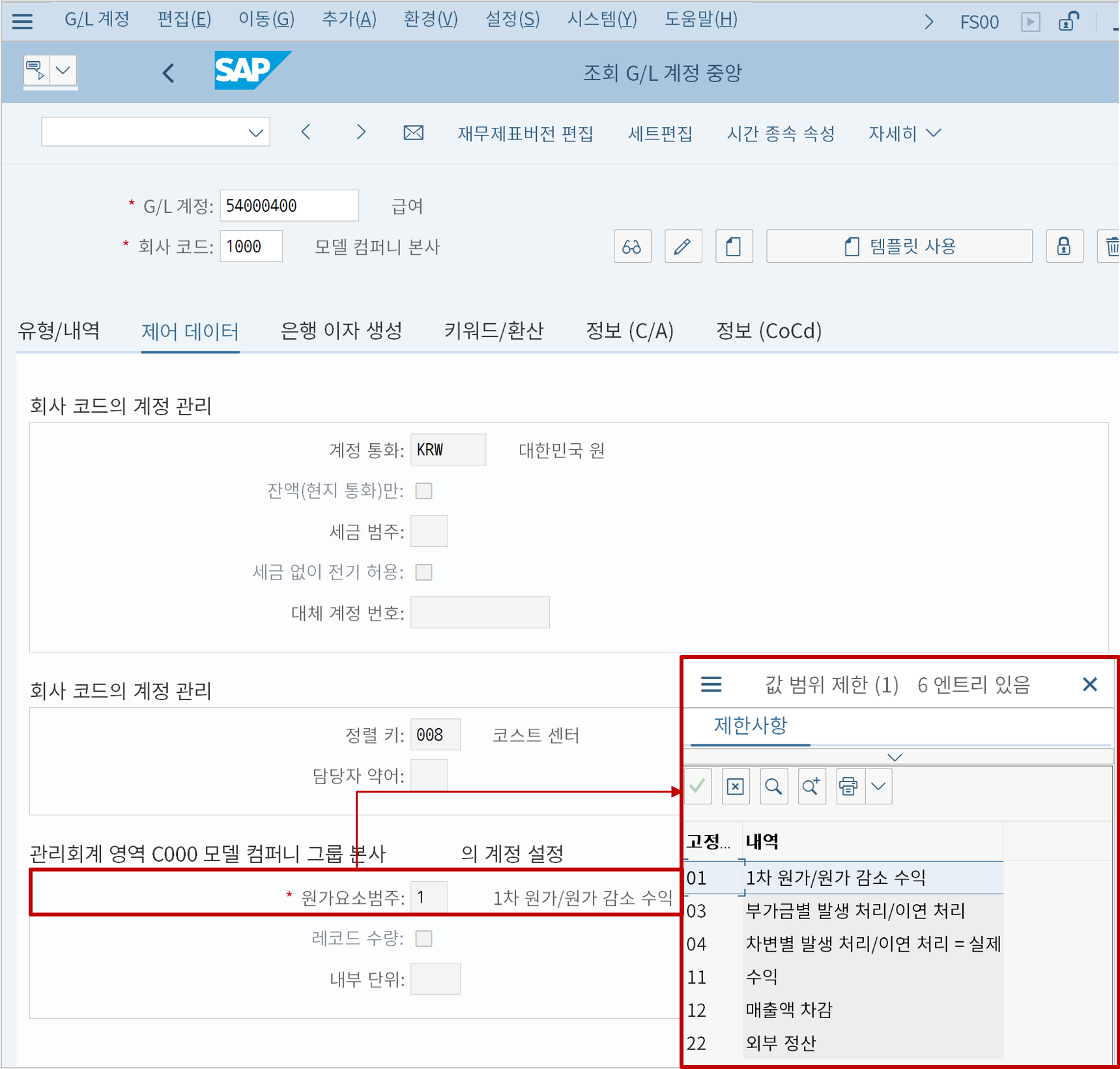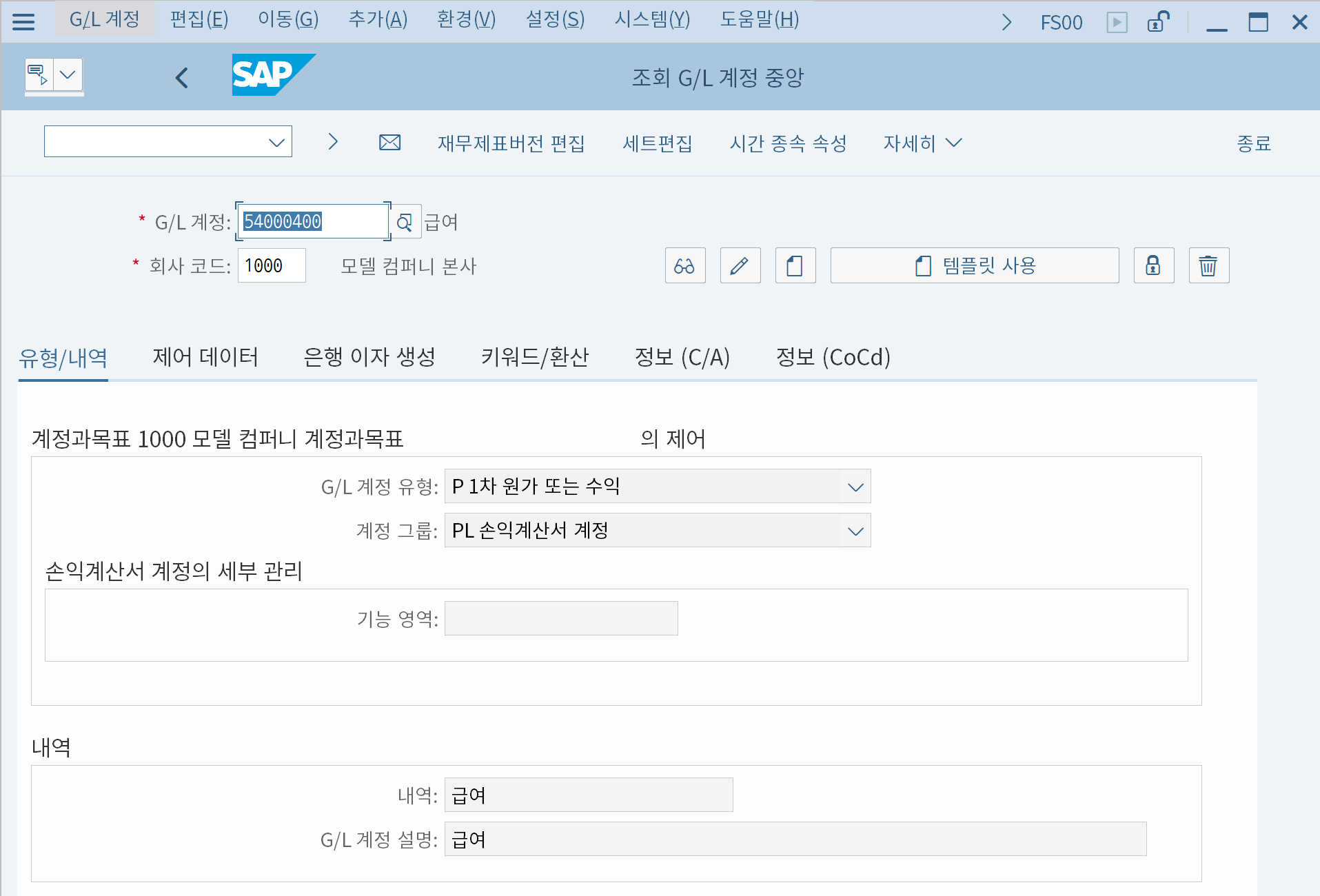 총계정원장(G/L) 계정이란 뜻이다. 과거에는 G/L 계정과 별도의 화면, 테이블에서 관리했었으나 이제는 G/L 계정과 같은 화면에서 관리한다.
