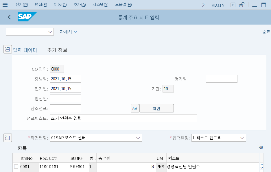 원가요소뿐만 아니라 SKF도 입력 가능하다. 이또한 CO Object이기 때문에 가능한 것이다. SKF에 대해서는 별도 포스팅할 예정이다.
