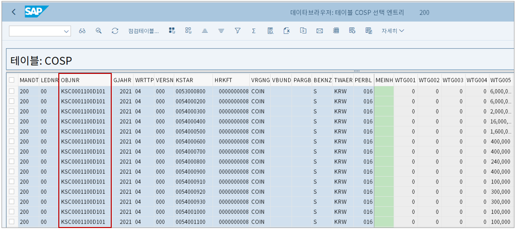 테이블 COSP에 OBJNR(오브젝트 번호)이란 필드가 바로 CO Object다. 앞자리가 "KS"로 시작하는 건 코스트센터를 의미한다.