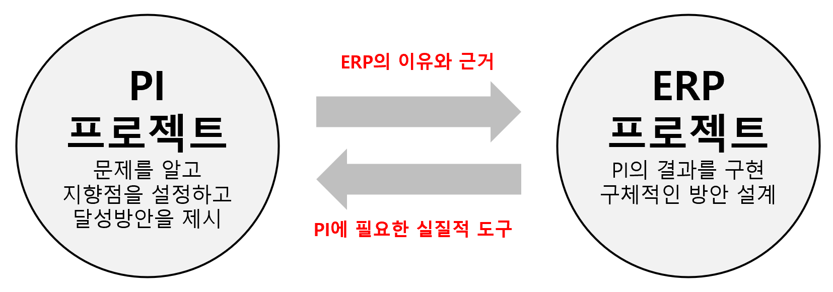 그리고 둘은 상호보완적이다. PI를 하면서 ERP의 이유와 근거를 찾을 수 있다면, ERP 구축을 하면서는 신기술을 탐색하고 효율적인 설계를 통해 PI에 필요한 실질적 도구를 갖출 수 있다.