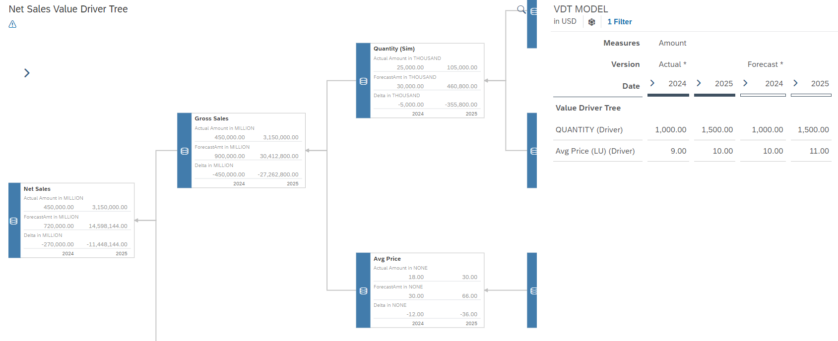 여기에 더불어 Value Driver Tree라는 기능이 있어서 특정 산식의 로직을 가시화하여 What-if 분석을 해볼 수도 있다.