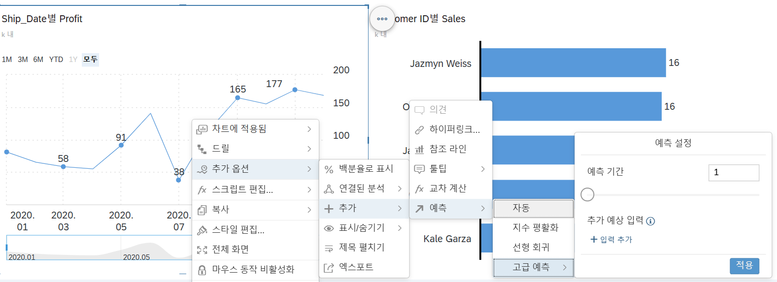 또는 차트에서 마우스 우클릭을 통해 곧바로 예측을 돌려볼 수도 있다.