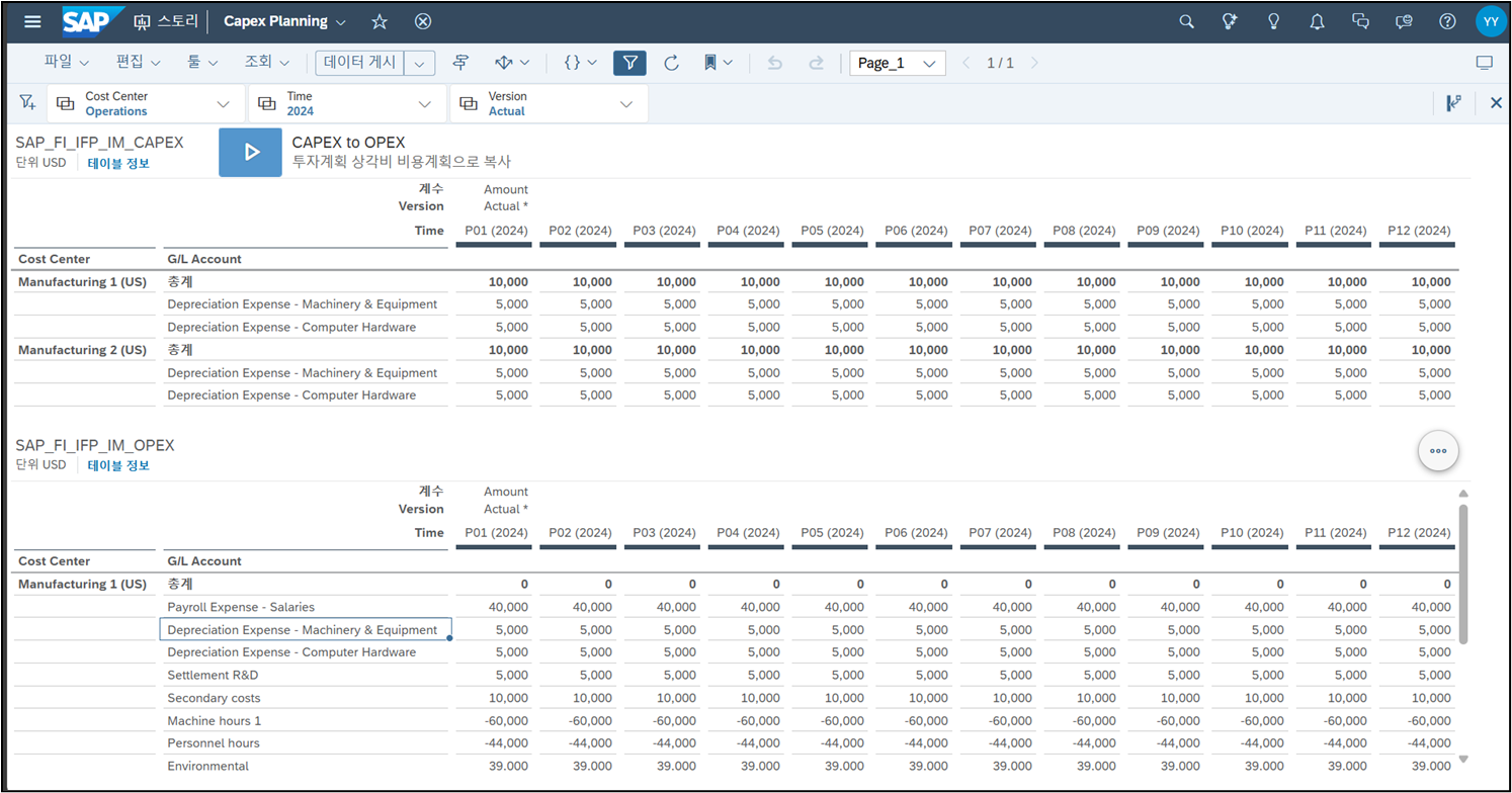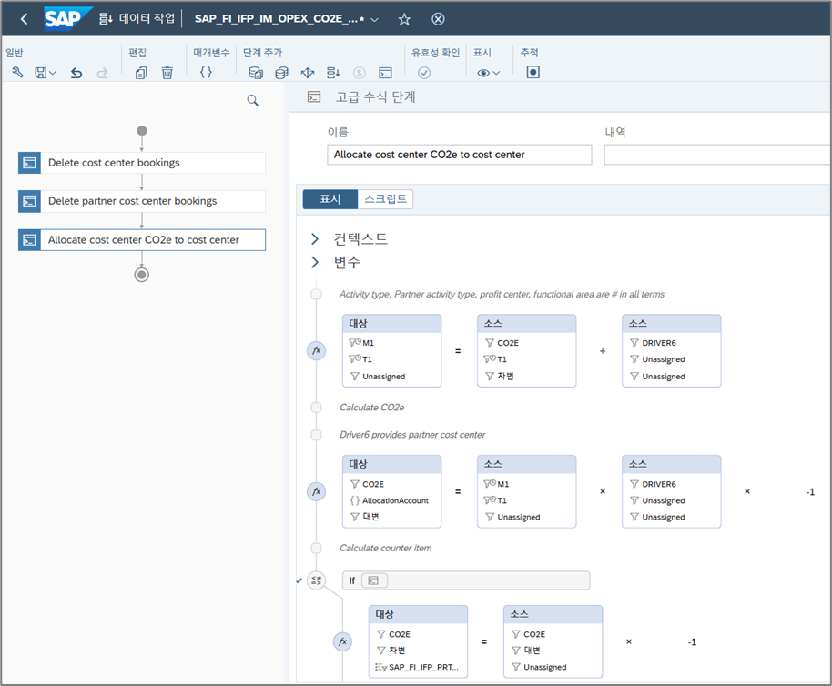 ERP에서처럼 상각비 계산, 계획 데이터 입력, SKF 입력, 배부, 액티비티 분할, 액티비티 단가 계산 같은 걸 각각의 화면을 실행해서 하나씩 수행할 필요가 없다. 한 화면에서 전부 입력하도록 구성할 수 있다.