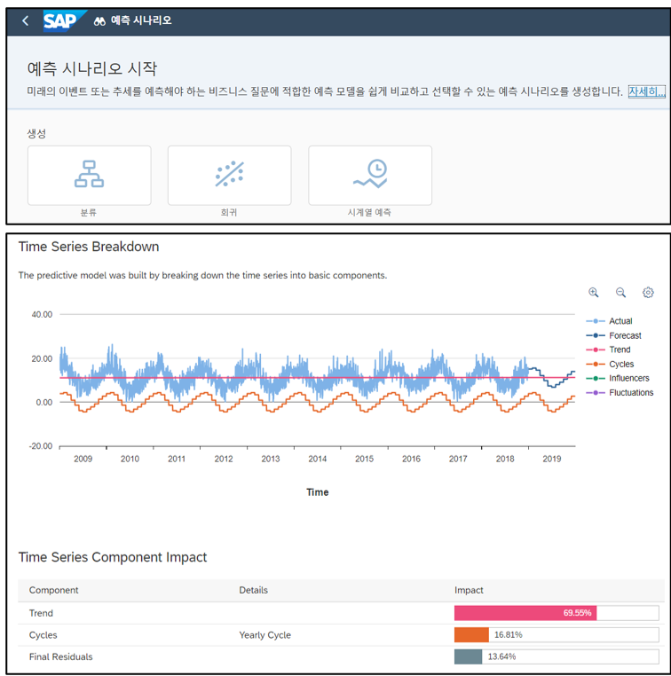 기본적으로 분류, 회귀, 시계열 예측의 세 가지 머신러닝 기능을 지원하는데, 그 중에서 시계열 예측한 데이터는 특정 계획 버전에 저장할 수 있다.